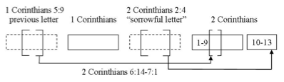 2 Corinthians 6:14-7:1 does not form the whole of the “previous letter.” It is not a unit that can stand on its own, so its beginning and end have been removed and then inserted where it does not fit very well. The reasons for considering these verses an interpolation are (1) that they do not tie closely to the surrounding context and (2) that if they are omitted, the flow of thought is smooth enough that a reader would not notice anything was missing. In relation to the first reason, we wonder why a redactor would put it in at this point if it does not fit with the context very well, especially after he had excised it from its original setting in a fashion that does not form a unit. If a redactor could insert a paragraph that was loosely connected, an author himself could do the same thing.