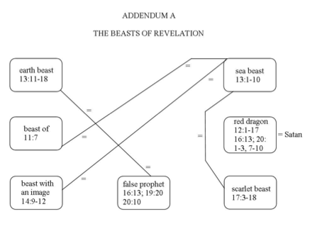 a. The three beasts come from sky, earth, and sea (12:1-12; 13:1-10;