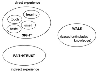 Some things we can know by faith or sight, but the limitations of time and space mean that we know even most of them by trust in testimony rather than by direct experience. We cannot know some things by direct sight: (1) the supernatural, (2) the universals of time and space, and (3) the specifics that occur outside our direct experience.