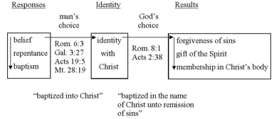Christian baptism is an interpersonal act in which a repentant believer identifies with Jesus Christ. On the basis of identity with Christ, God promises to forgive our sins, grant us the presence of his Spirit, and add us to Christ's body, the church.