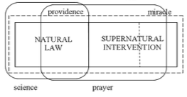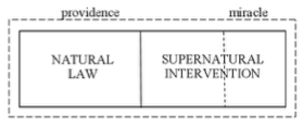“Providence” refers to God’s supervision over the flow of events in his creation so that the course of history stays within the boundaries of how he intends it to go. Largely through natural law God accomplishes his purposes indirectly in the natural order of chemicals, forces, plants, and animals and even in the social order of people. The paradigm for in-built natural law (vs. direct divine choice for each “movement” in nature) is the Genesis formulae “whose seed is in itself” (1:11; cp. 1:292) and “after their kind” (1:11, 12, 21, 24, 253). In-built natural law operating deterministically “on its own” is what is assumed in drawing a distinction between intervening and not intervening. But beyond natural law, from time to time God intervenes directly in invisible ways to adjust the course of events to keep them in the proper channel. As used here, the term “providence” consists of natural law plus invisible intervention. We have reserved the word “miracle” for God’s direct, visible intervention. Often “providence” covers everything God does in overseeing his universe whether direct or indirect, visible or invisible. “Miracle” becomes a sub-unit under providence and indicates the visible manner in which God breaks into history.