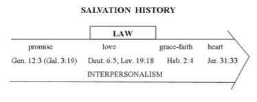 E. Moving to an interpersonal basis for being viewed as righteous—identity with the Righteous One is really a return to basics that preceded law. That is Paul’s point in Galatians 3:19 by emphasizing the word “promise,” another interpersonal term. The law succeeded promise by 430 years and did not annul promise, which preceded it. Law and promise are parallel kinds of things: “if it is by law, it is not by promise” (Galatians 3:18).