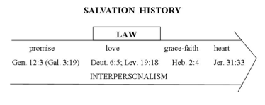E. Moving to an interpersonal basis for being viewed as righteous—identity with the Righteous One is really a return to basics that preceded law. That is Paul’s point in Galatians 3:19 by emphasizing the word “promise,” another interpersonal term. The law succeeded promise by 430 years and did not annul promise, which preceded it. Law and promise are parallel kinds of things: “if it is by law, it is not by promise” (Galatians 3:18).