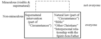 The diagram pictures miraculous built on non-miraculous. Everything that has been said about the Spirit’s non-miraculous operation in conversion, guidance, power, intercession, and unification underlies any miraculous operation. Certain implications are come from this arrangement of the Spirit’s ways of working.