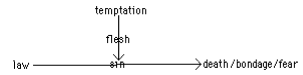 We hasten to add that these statements represent the purely logical movement within law and grace. They do not include modal and qualitative distinctions in those movements. In the first process, the mode of production is inherent result: sin produces death because a sinful act itself breaks perfection. In the second process the mode of production is non-inherent result: the aspiration for righteousness (implied by identification with the righteous Messiah) only meets the interpersonal condition on which God grants life. The third situation goes beyond the scope of Romans 8 because Paul does not specifically address the struggle. It must be remembered from Romans 7 (or brought in from Galatians 5:17-18; 1 Corinthians 9:27; cp. 1 John 1:8-10). The second and third processes presuppose the state of acceptance made possible by Christ. In all three, “flesh” is equivalent to “body” (6:6; 7:24; 8:13), “passions” (7:5), and even “members” sometimes (6:13, 19; 7:5, 23). The “human spirit” (8:16) is equivalent to “mind” when used alone (7:23) and to “inward man” (7:22). Finally, “death” covers two related matters: the irreversible bondage inherent to legal imperfection and the practical bondage that may be called habit (psychological). Before discussing this last point, we must say some things about Paul’s use of the word flesh.